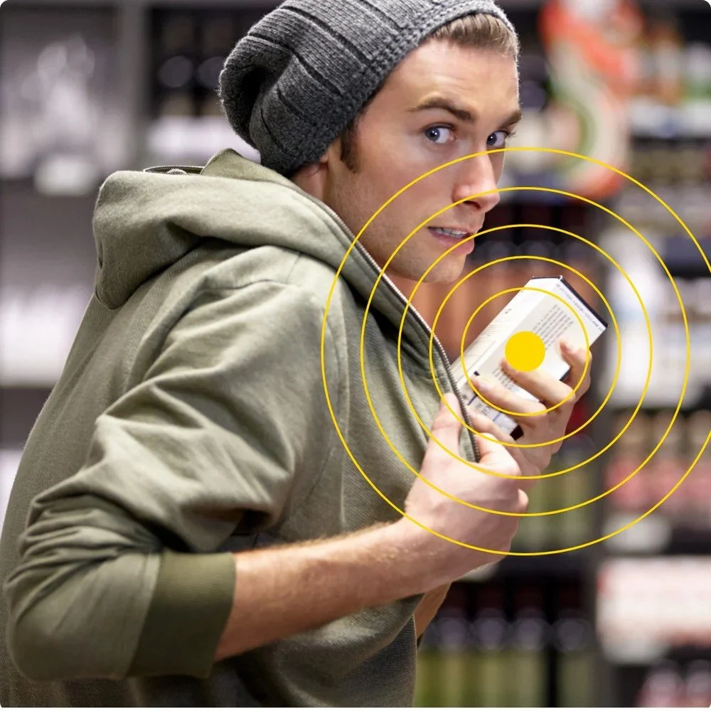 When a tagged item crosses the invisible perimeter created by a Hub, it immediately triggers a loud, localized alarm—alerting staff and acting as a strong deterrent. Even if the item leaves the store, the alarm continues until deactivated, making stolen goods harder to conceal.